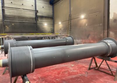 Deze vier winchdrums en supports hebben we gestraald en voorzien van een nieuw 3-laags coatingsysteem.